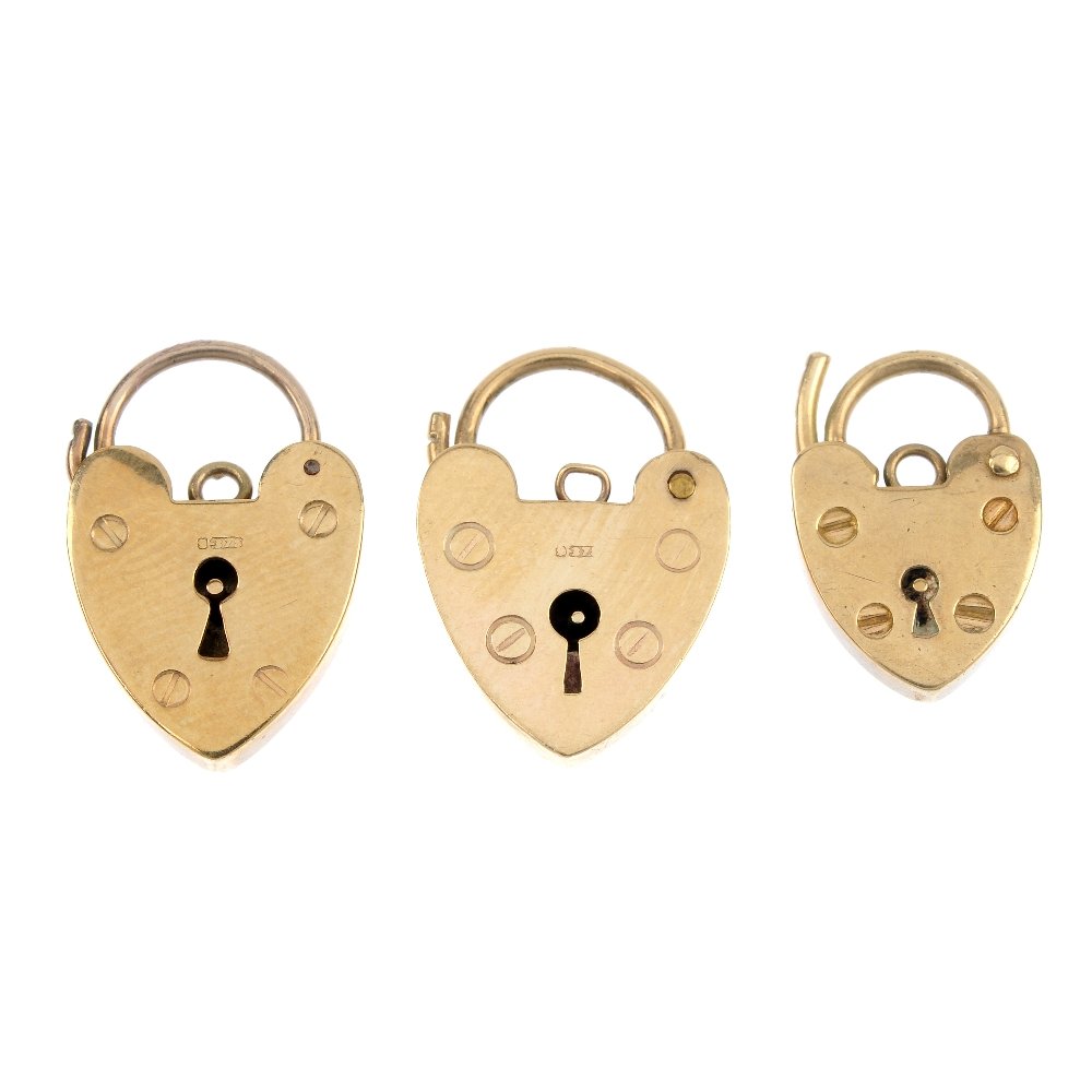 Three 9ct gold padlock clasps.
