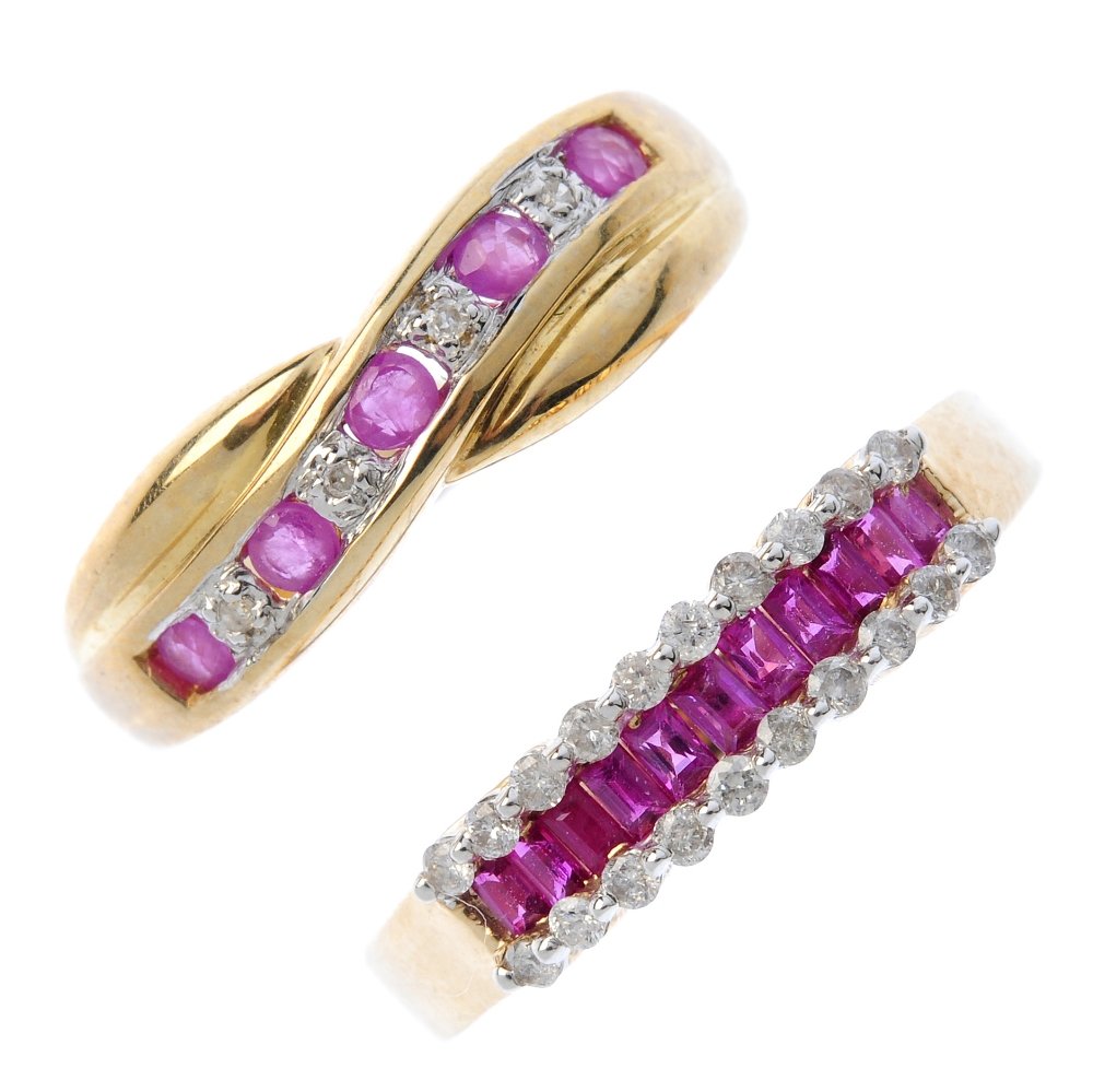 Three 9ct gold ruby and diamond rings. To include a