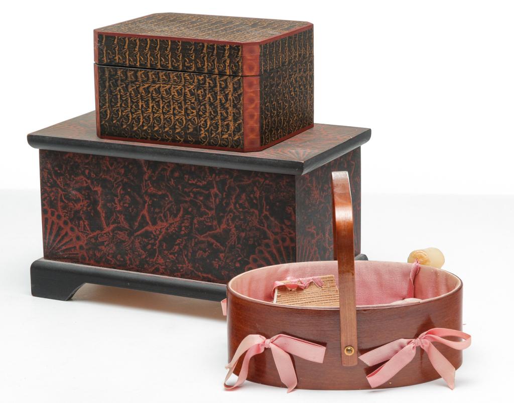 Lot of 2 Antique Boxes5 days LeftReed & Barton & Others Flatware Boxes 4pc LOTFeb 26, 2026Lot of 2 Antique Wood Tool Chests.3 hrs Left(4) COLLECTION OF CARVED WOOD, INLAID & LEATHER-CLAD TABLE BOXESFeb 21, 2026American Folk Art Wood Boxes, 19th C., 2Mar 26, 2026TWO WOODEN BOXES Early 20th Century Lengths 8" and 10".Feb 18, 2026AMERICAN TRAMP ART CHIP-CARVED PINE AND FABRIC-LINED SEWING BASKET.Feb 19, 20263-Drawer Circa 1950s American Woven Leather Chest.1 hr LeftAntique PA Dutch Floral Blanket Chest c1860 Pine Poplar DovetailFeb 14, 2026Early Primitive Wooden Chest6 days LeftFIVE SEWING BOXES AND TWO SEWING BASKETS, INCL. PYROGRAPHIC EXAMPLE.Feb 19, 2026FORBES SILVER CO. VICTORIAN AMBER GLASS ENAMELED DRESSER JEWELRY BOX1 hr LeftThree Tibetan Inlaid Brass Filigree Dresser ObjectsFeb 19, 2026Two Sabbathday Lake Shaker Carriers, Sabbathday Lake, ME, possibly early 20th century,American Blanket ChestFeb 16, 20261960s Florentine Jewelry Box