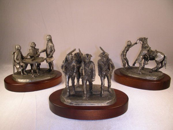 THREE AMERICAN REVOLUTION PEWTER FIGURINES