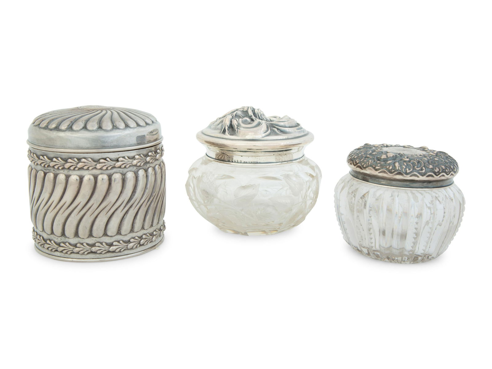 Lot of sterling silver dresser accessories, including various covered glass jars and scent bottles.Mar 01, 2026A lot of three variously decorated cut crystal and opaline glass objects6 days LeftLot of Georgian sterling silver. 1) Pair of shakers. John Crouch and Thomas Hannam. London, 1796.Mar 01, 2026Meriden, Imperial Silver & Others Assorted 9pc LOTFeb 26, 2026Silver Items, RussiaFeb 25, 2026Three Glass and French Silver Dresser Jars, Bush Family ProvenanceFeb 25, 2026Four Baroque style sterling silver vanity boxesMar 03, 2026Continental Silver-Plated Jewelry BoxFeb 25, 2026(3) STERLING SILVER WEIGHTED, SILVER VASE5 days Left6 Miniature Silver Boxes & VinaigretteMar 14, 20263 Miniature Sterling BoxesMar 14, 2026Victorian Silver Mounted Glass Vessels, 2Mar 12, 20263 Sterling Snuff BoxesMar 14, 2026Three Pieces of English, American & Irish Sterling and Coin Silver2 days Left3 Gustave Keller French Silver Mounted Engraved Glass Perfume Bottles c1900Mar 15, 2026GROUP OF ENGLISH SILVER, 250gFeb 25, 2026