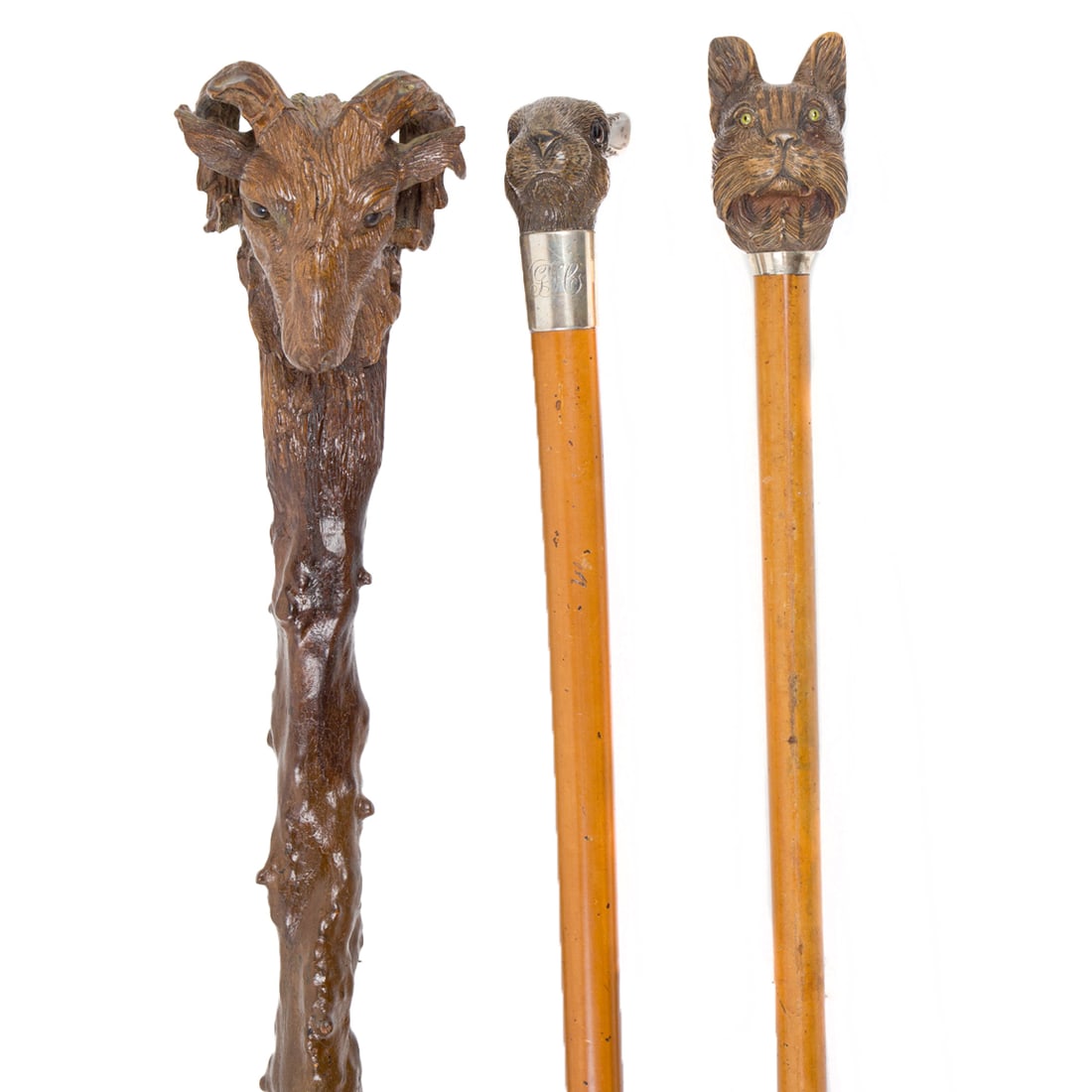 LOT OF 3 ANTIQUE WOODEN SILVER HORN CANESFeb 19, 2026A lot of two antique variously decorated walking sticks.Feb 24, 2026LOT OF 3: SWORD CANE, SWAGGER STICK, AND RIDING CROP.Feb 25, 2026Four Silver-Mounted, Bone, Carved Wood and Bamboo Canes2 days LeftFive Metal-Mounted and Painted Carved Wood Anima2 days LeftSix Painted and Carved Wood Animal-Form Canes, c2 days LeftFour Silver and Metal-Mounted and Carved Wood Fi2 days LeftCollection of Antique Walking Sticks or Canes5 days Left4 walking sticks with striking horn handles (3) in animal motifs including a mythical animal,4 days LeftGROUP SIX ASSORTED CANES AND WALKING STICKS - Largest, L: app. 50 in..1 day LeftA Group of Three Silver-Mounted, Mixed-Media and2 days LeftThree Silver-Mounted and Painted Wood Canes: Hor2 days Left5 walking sticks with dark wooden shafts and curved silver crutch handles (2) and richly engraved4 days Left5 walking sticks with wooden shafts and curved silver crutch handles (3) and knob crutch grips (2)4 days LeftFour Walking Sticks1 day LeftThree Silver-Plated and Carved Wood Figural Cane2 days Left