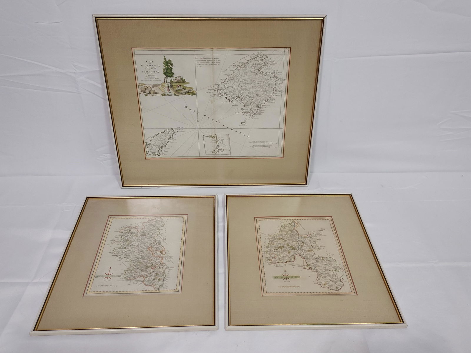 THREE ANTIQUE 18TH C FRAMED MAPS: SPAIN, ENGLAND