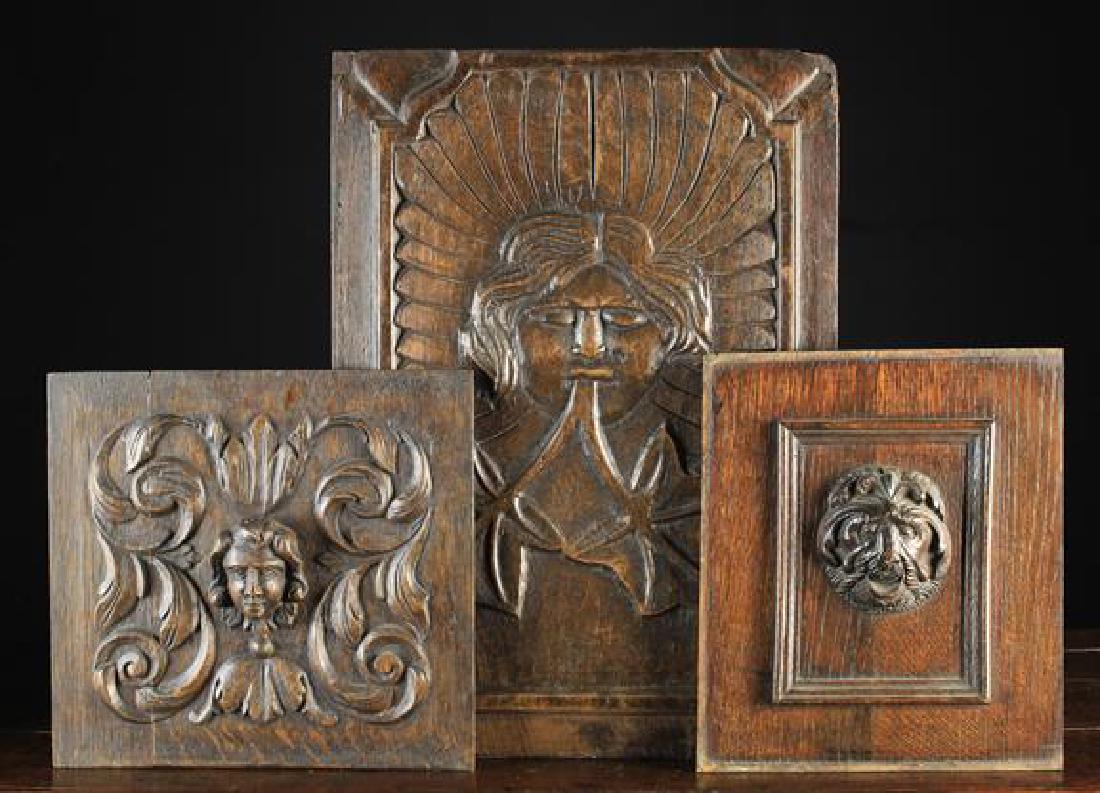 Three Antique Carved Oak Panels