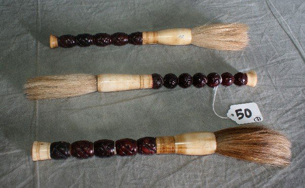 Three Antique Chinese calligraphy brushes.