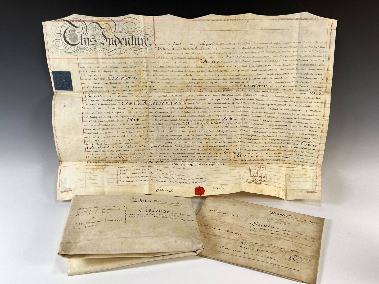 THREE ANTIQUE ENGLISH INDENTURE CONTRACTS