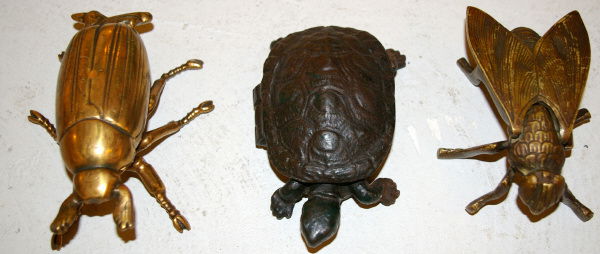 Three Antique Figural Match Holder Safe Turtle