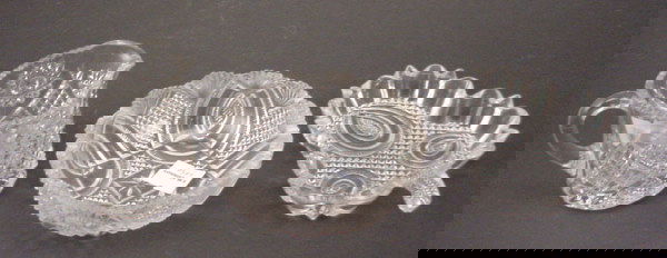 SoldCollection of American Glass PiecesCollection of 19 American glass, including: 17 Early American Pattern Glass pieces: lion cover, five 'three face' sherbet cups, three 'three face' compotes, two large 'three face&#See Sold Price