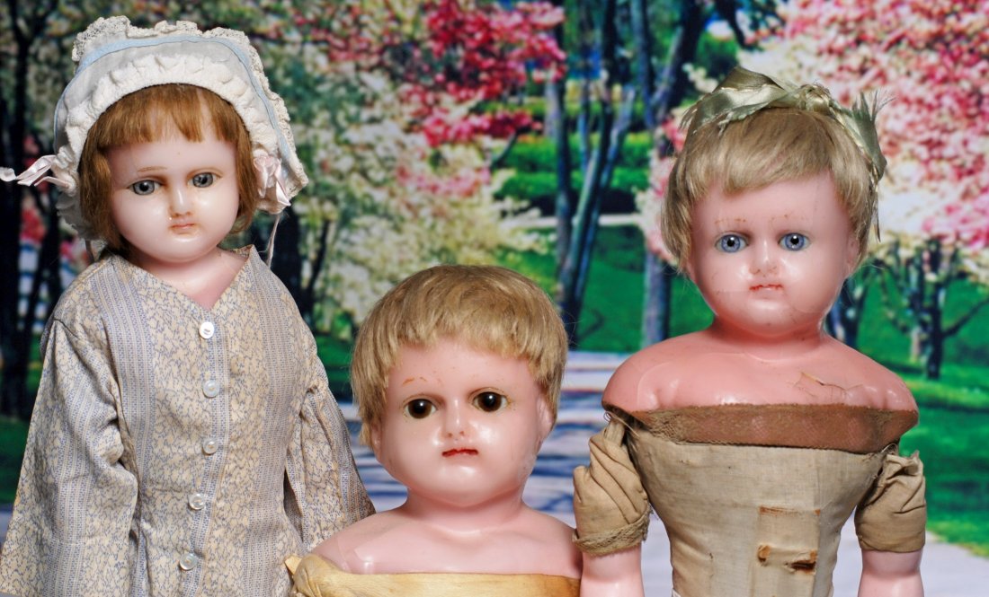 THREE ANTIQUE WAX-OVER-COMPOSITION DOLLS