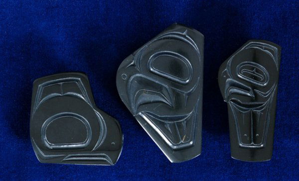 Three Argillite Thunderbird Brooches by Denny Dixo