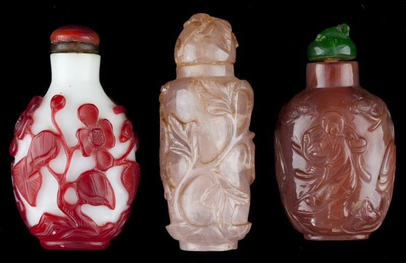 Three Glass Snuff Bottles, China, (3)Three Overlay Glass Snuff Bottles, China, (3)Three Red Overlay Glass Snuff Bottles, China, (3)Two Agate and One Chalcedony Snuff Bottles, China, (3)Three Agate Snuff Bottles, China, (3)Three Red Glass Overlay Snuff Bottles, China, (3)Two Agate and One Chalcedony Snuff Bottles, China, (3)Five Stone Snuff Bottles, China, (5)Three Red Glass Overlay Snuff Bottles, China, (3)A Group of Three Carved Hardstone Snuff Bottles, China, (3)Three Overlay Glass Snuff Bottles, China, (3)Three Agate Snuff Bottles, China, (3)Three Vintage Snuff BottlesSix Glass Snuff Bottles, China, (6)Three Enameled Snuff Bottles, China, (3)Four Assorted Chinese Snuff Bottles7 hrs Left