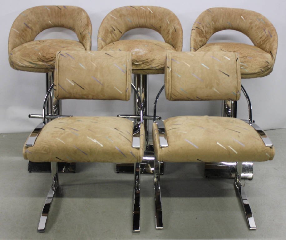Three Barstools, Two Chairs, Chrome and Upholstery