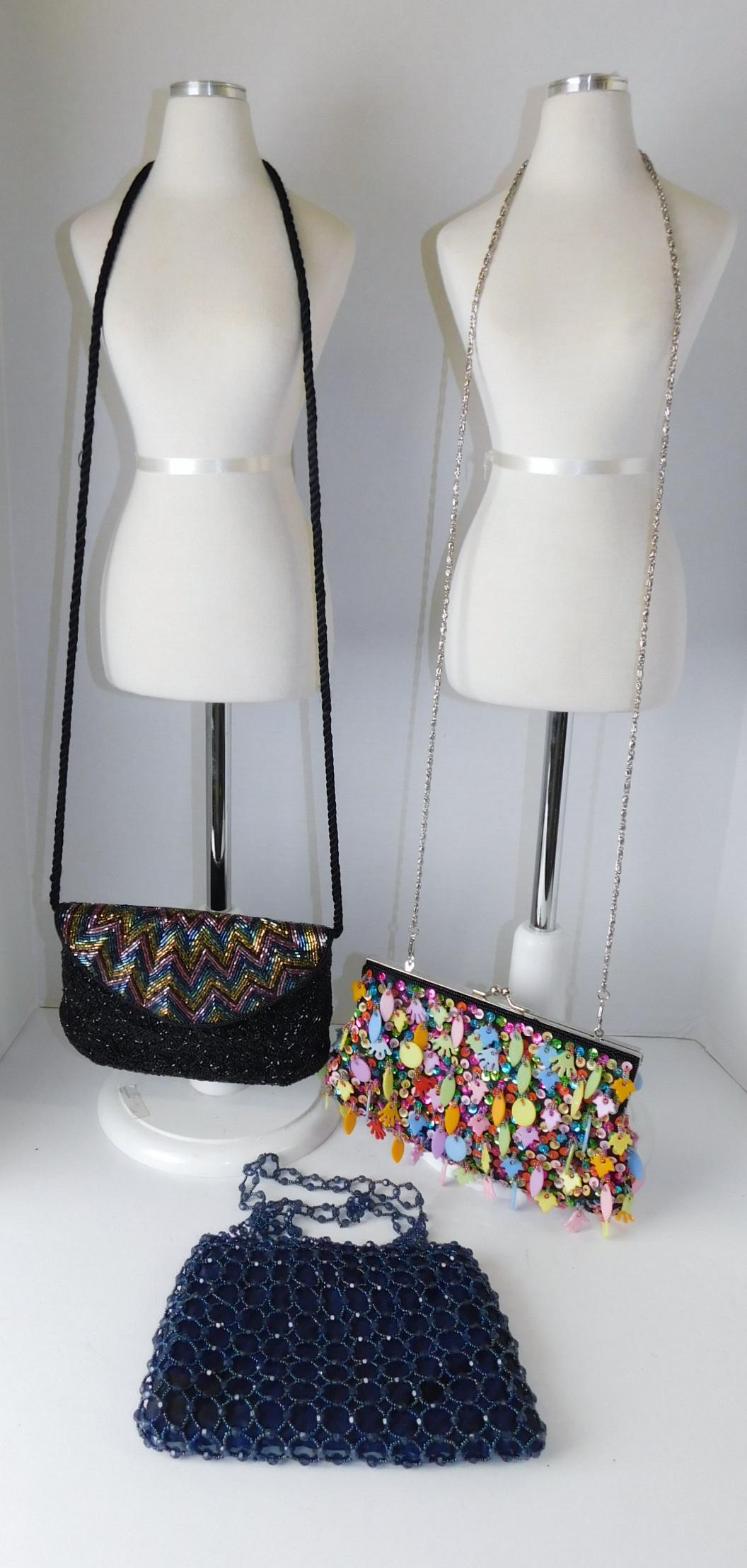 THREE BEADED HANDBAGS