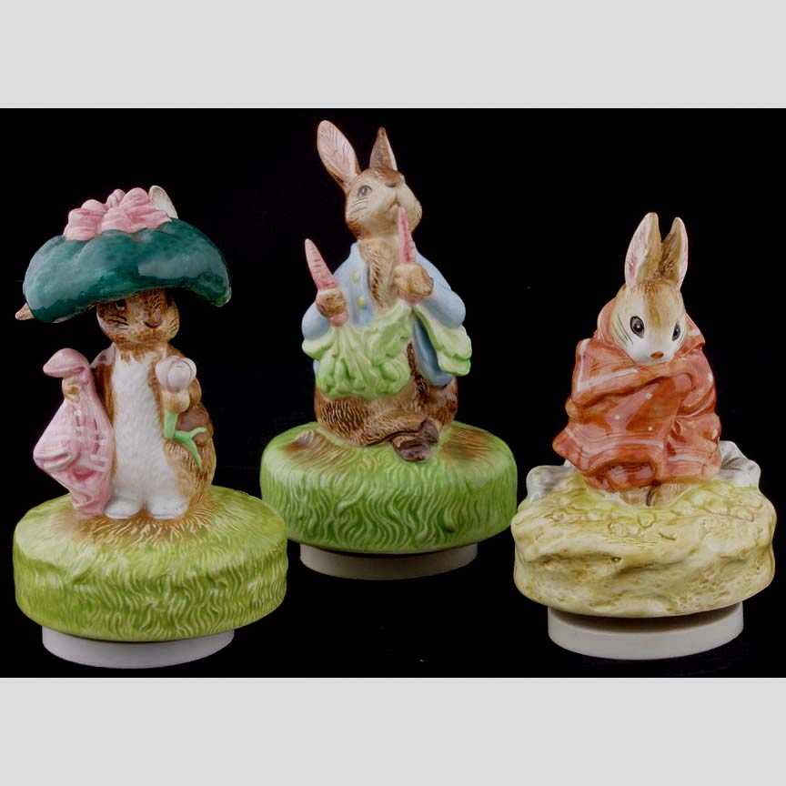 Three Beatrix Potter music boxes by Schmi