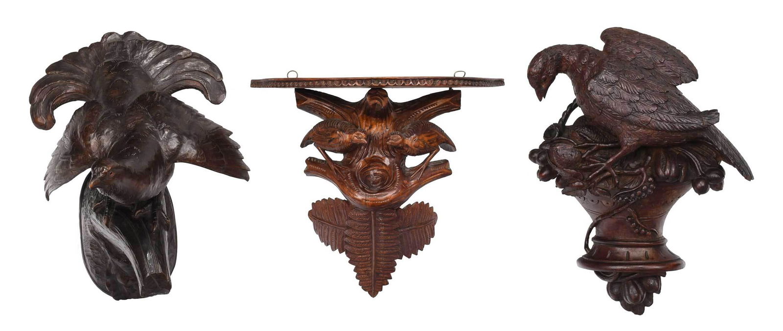 Three Bird Form Black Forest Wall Brackets