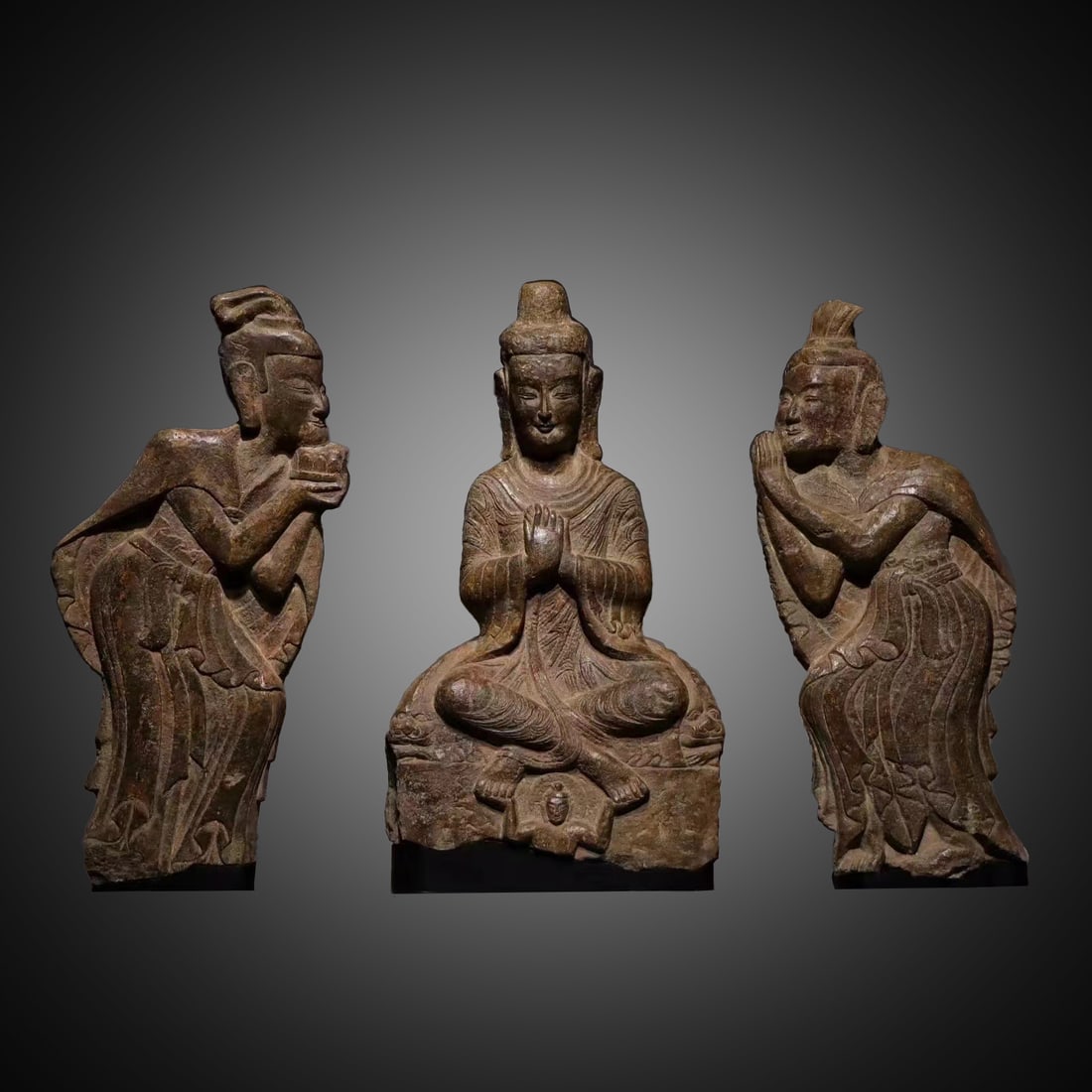 Three Bluestone Statues From Before The Ming Dynasty
