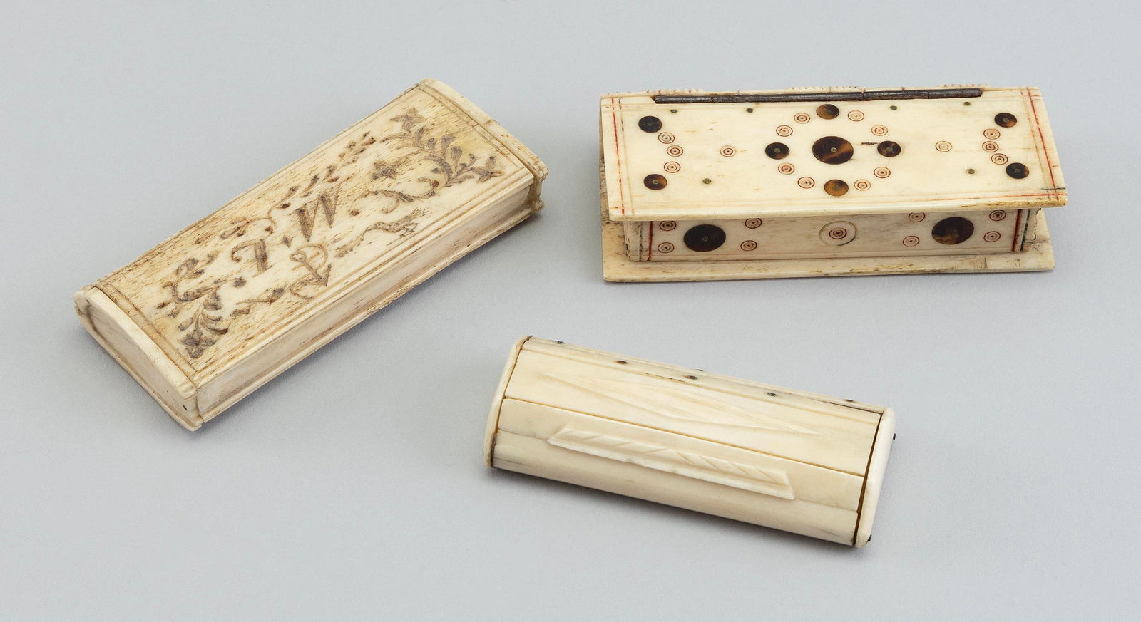 THREE BONE BOXES 19th Century Lengths from 3.25" to 3.75".