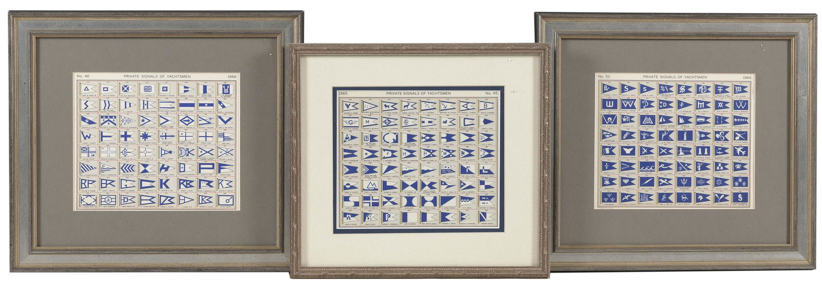 THREE BOOKPLATES FEATURING MARITIME SIGNAL FLAGS Circa