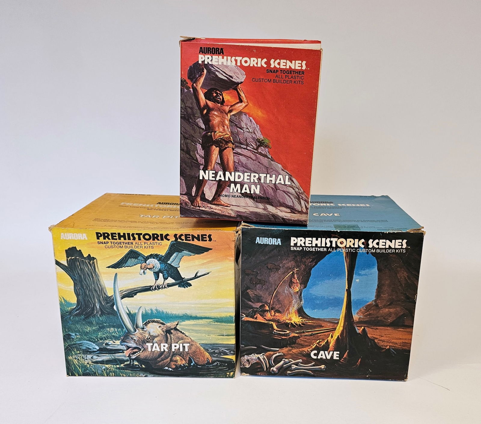 Three boxed Aurora Prehistoric Scenes plastic assembly kits to include 'Neanderthal m
