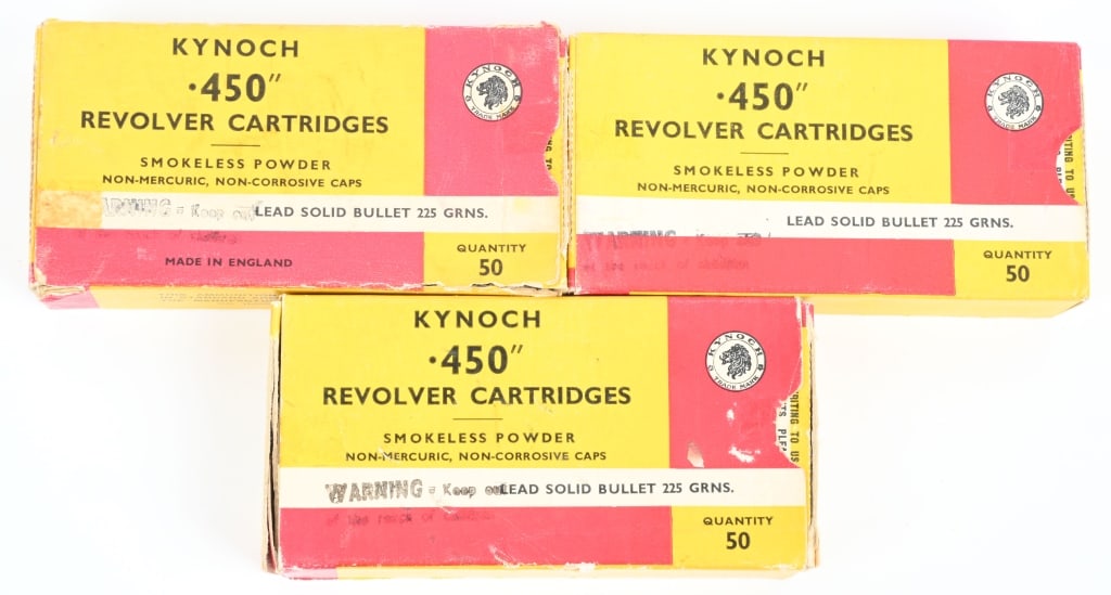 THREE BOXES KYNOCH .450 REVOLVER CARTRIDGES