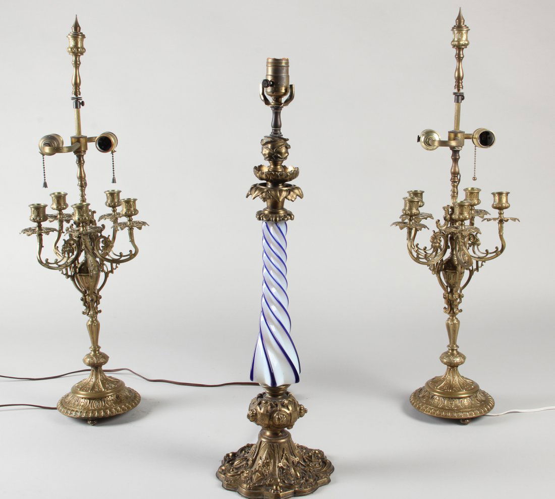 Student Lamp LotApr 11, 2026Lamp LotApr 11, 2026Lot includes a vintage four-piece silverplate candelabra set consisting of a pair of convertibleMar 27, 2026Lot of antique brass lighting items incl pr of adjustable candle wall sconces & pr of wall pricketsMar 23, 2026(3) CONTEMPORARY METAL 1-LIGHT TABLE LAMPS, 1 IN FORM OF CASTLE TURRETMar 28, 2026Antique Brass 4-Arm Candelabra • 38" Tall Floor Candle Holder • Ornate Victorian AltarA Pair of American Aesthetic Movement Brass & Longwy Earthenware Candelabras18 hrs LeftA pair of Neo-Grec bronze five light candelabra now mounted as table lamps7 days LeftPAIR OF FRENCH EMPIRE STYLE BRONZE 6-LIGHT CANDELABRAMar 21, 2026PAIR TABLE SCONCES - CUT GLASS PRISMSMar 22, 2026A pair of brass and glass candelabra lamps, 19th century,5 days LeftPair of Gilt Brass Bouillotte Lamps with Tole Shades7 days LeftRestauration Bronze Figural Candelabra Lamps, PairApr 07, 2026Pair of Red Marble and Gilt Bronze Neoclassical Style Candelabra Converted to LampsMar 25, 2026TWO MAISON JANSEN STYLE FRENCH NEOCLASSICAL WHEAT SHEAF GIRANDOLE LAMPSMar 21, 2026Pair of Candelabra and a Pair of CandlesticksMar 25, 2026