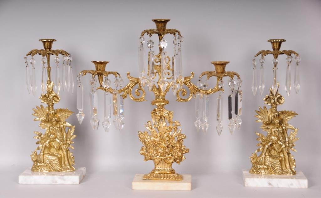 Louis XVI Style Brevettato Brass and Marble Ormolu Candelabras - set of 2J Elliott Estate Sales$7002 days Left