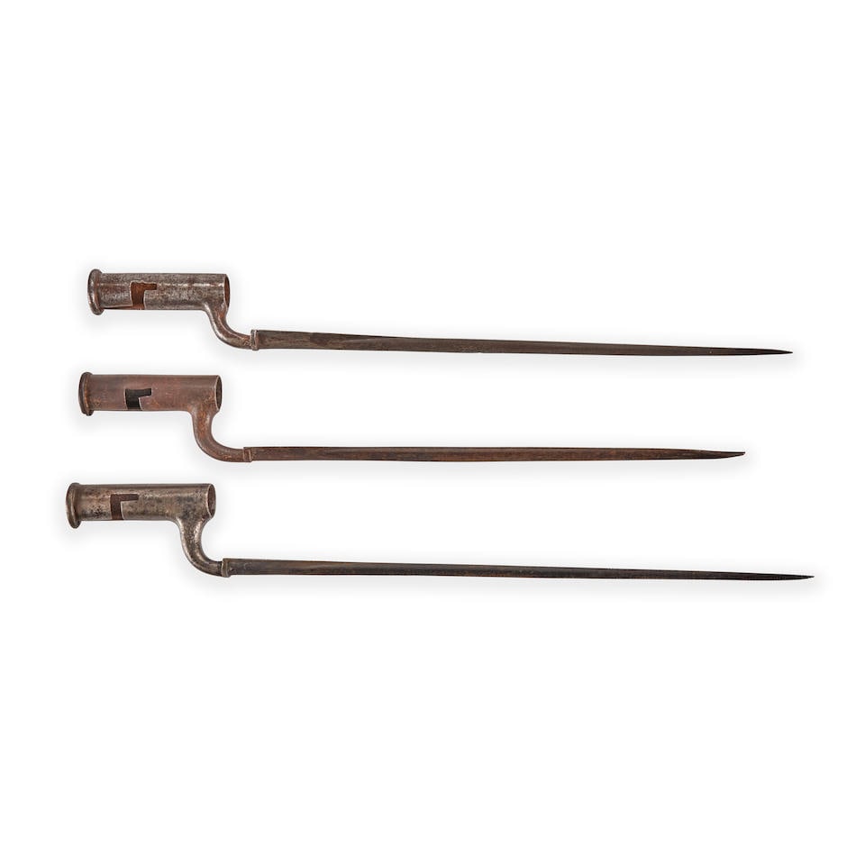 THREE BRITISH LAND PATTERN MUSKET SOCKET BAYONETS,