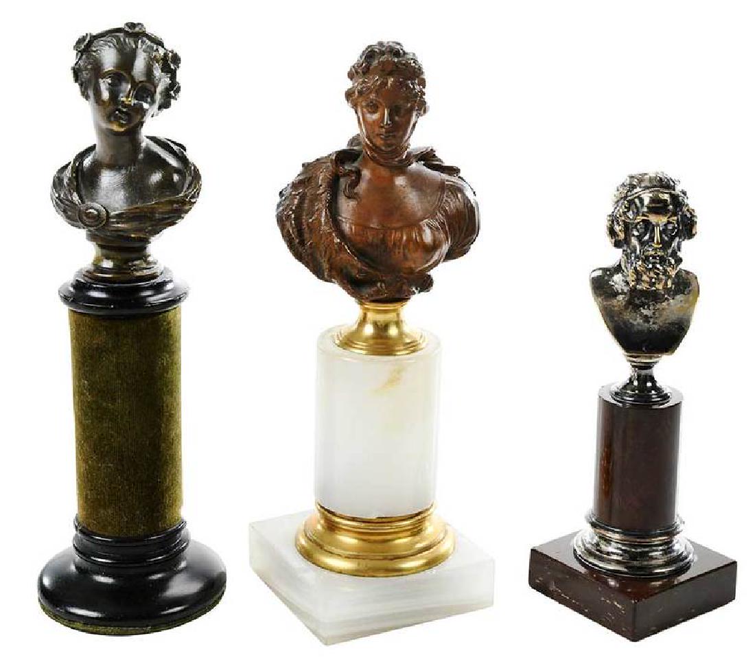 A lot of three patinated bronze bust sculpturesFeb 24, 2026Lot of 3 AS-IS Pieces of Porcelain5 days LeftA lot of four antique patinated various bronze and spelter figurinesFeb 24, 2026(4) DECORATIVE CAST BUSTS LINCOLN, DICKENS, BEETHOVEN & MOZARTFeb 21, 2026(2) CLASSICAL STYLE MARBLE BUSTS ON PEDESTALS, MARCUS AURELIUS & JULIUS CAESAR, 84.5"HFeb 22, 2026(3) EMPIRE STYLE BRONZE & MARBLE MANTEL CLOCK & CANDELABRA GARNITURE SETFeb 22, 2026COPELAND PARIAN BUSTS - LORD BYRON & SIR WALTER SCOTTFeb 20, 2026Two Continental Bronze Busts5 days LeftGroup of 5 Grand Tour Bronzes on StandsFeb 25, 2026A Pair Of Monumental Empire Figural Bronze/Malachite Centerpieces6 days LeftPAIR OF 19TH CENTURY FRENCH INFANT BRONZE BUSTS ON MARBLE BASESFeb 21, 20263 Decorative BronzesFeb 25, 2026(3) Italian Neoclassical style Roman Emperor bustsFeb 19, 2026Three Antique Grand Tour Cabinet Pieces, early-to-mid 19th c., Figure- H.- 12 1/2 in., W.- 4 in.,Feb 27, 2026Group of 5 Grand Tour Bronzes on StandsFeb 25, 202619Th Century 3 Piece Bronze & Marble Clock SetFeb 26, 2026