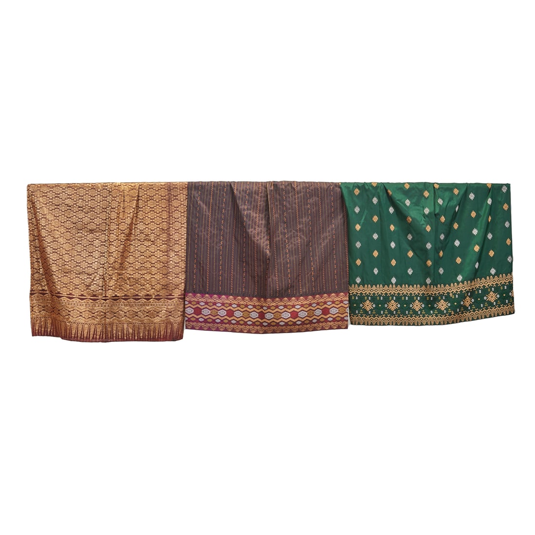 Three Brunei Gilt Thread and Silk Brocade Skirts