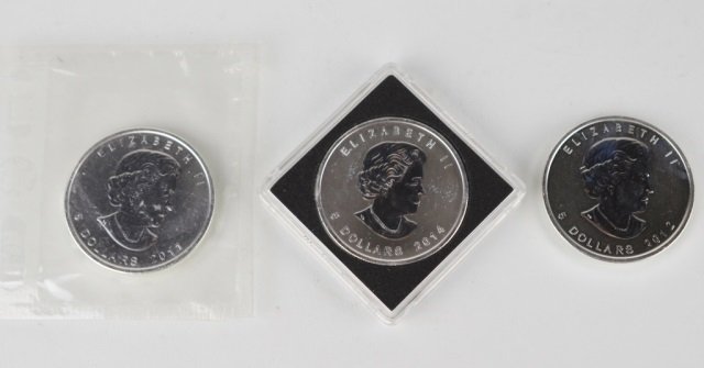 THREE CANADIAN SILVER 5 DOLLAR COINS