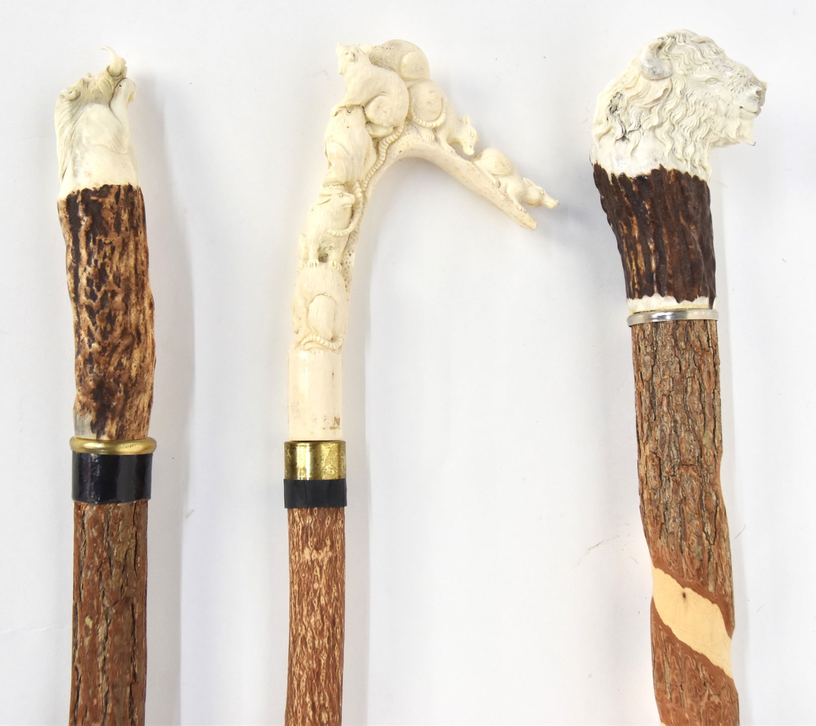 Three Carved Antler Handled Canes