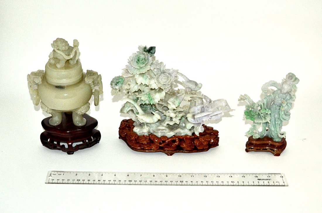 Four Jade ObjectsApr 25, 2026Group of Chinese Jade, Jadeite, and Hardstone Carvings2 days LeftA ARCHAIC JADE CARVED THREE-HOLE KNIFEMay 02, 2026THREE ASIAN CARVED OBJECTS, 19TH CApr 29, 2026Three Chinese jade Carved"hoof-shaped" Ornament4 days LeftECLECTIC MIXED LOT OF ASIAN MINIATURE FIGURINES5 days LeftChinese Hardstone Miniature Orchestra Set2 days LeftCollection of Chinese Objects2 days LeftThree small antique Himalayan (or nearby) miniature carved stone objects.Apr 30, 2026Collection of Three Chinese Carved Jade, Silver Jewelry Items2 days LeftFive Carved Chinese Jade ObjectsApr 25, 2026Antique Natural Hand Carved Jade Three chicken jade penMay 24, 2026Lot of Three Jade Figures1 day LeftCollection of three ritual objects “fly swatters??, Nigerian culture, 20th centuryApr 15, 2026Three Mezcala Stone Figures & One Head Pendant2 days LeftA Single Cloisonné Hetian White Jade-Inlaid Ruyi ScepterMay 09, 2026