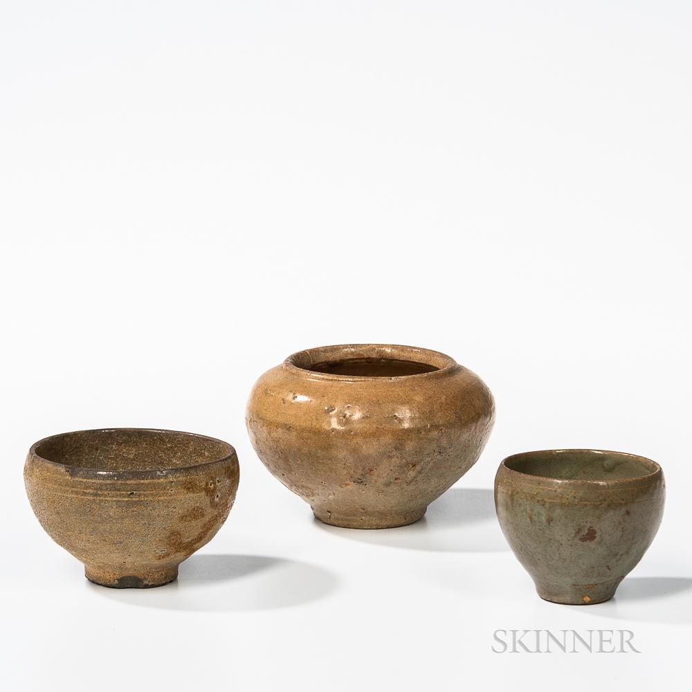 Three Celadon-glazed Stoneware Vessels