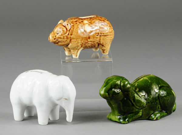 THREE CERAMIC ANIMAL STILL BANKS