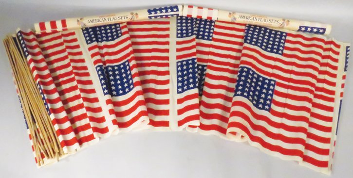 SoldThree American FlagsA group of three flags: 48-star, printed 48-star, and printed 50-star. Largest: approx. 13ft x 8ft 6in.See Sold Price