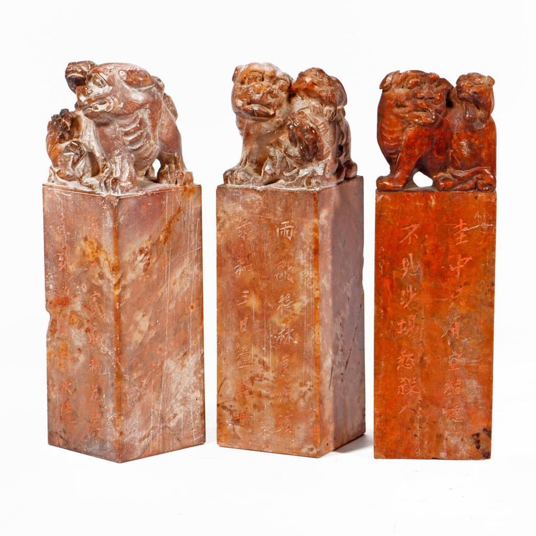 Three Chinese Carved Soapstone Chops/Stamps.