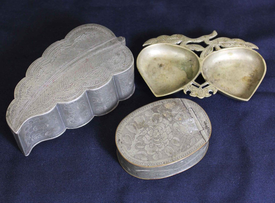 Three Chinese Copper Pieces and Tin Boxes