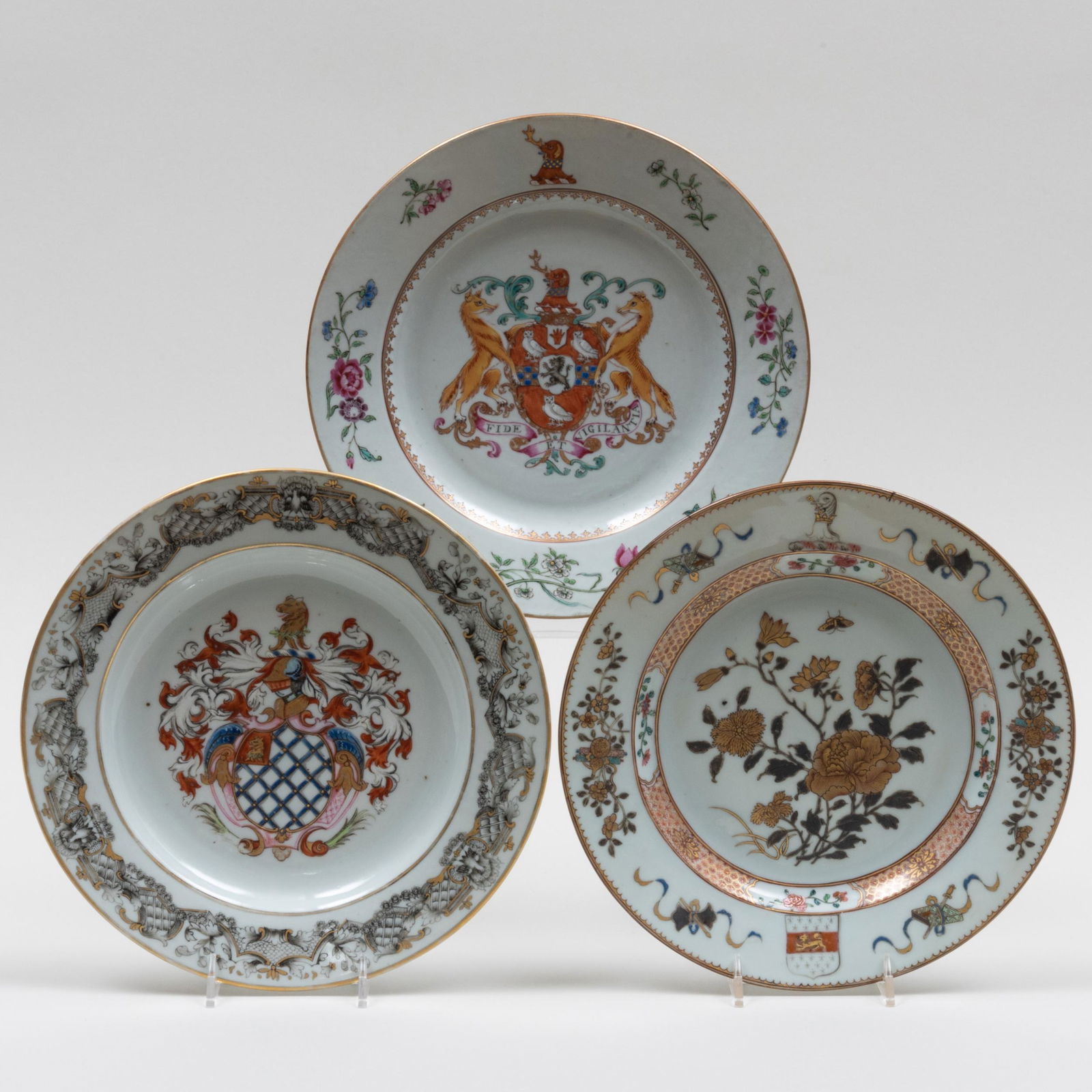 Three Chinese Export Porcelain Armorial Plates