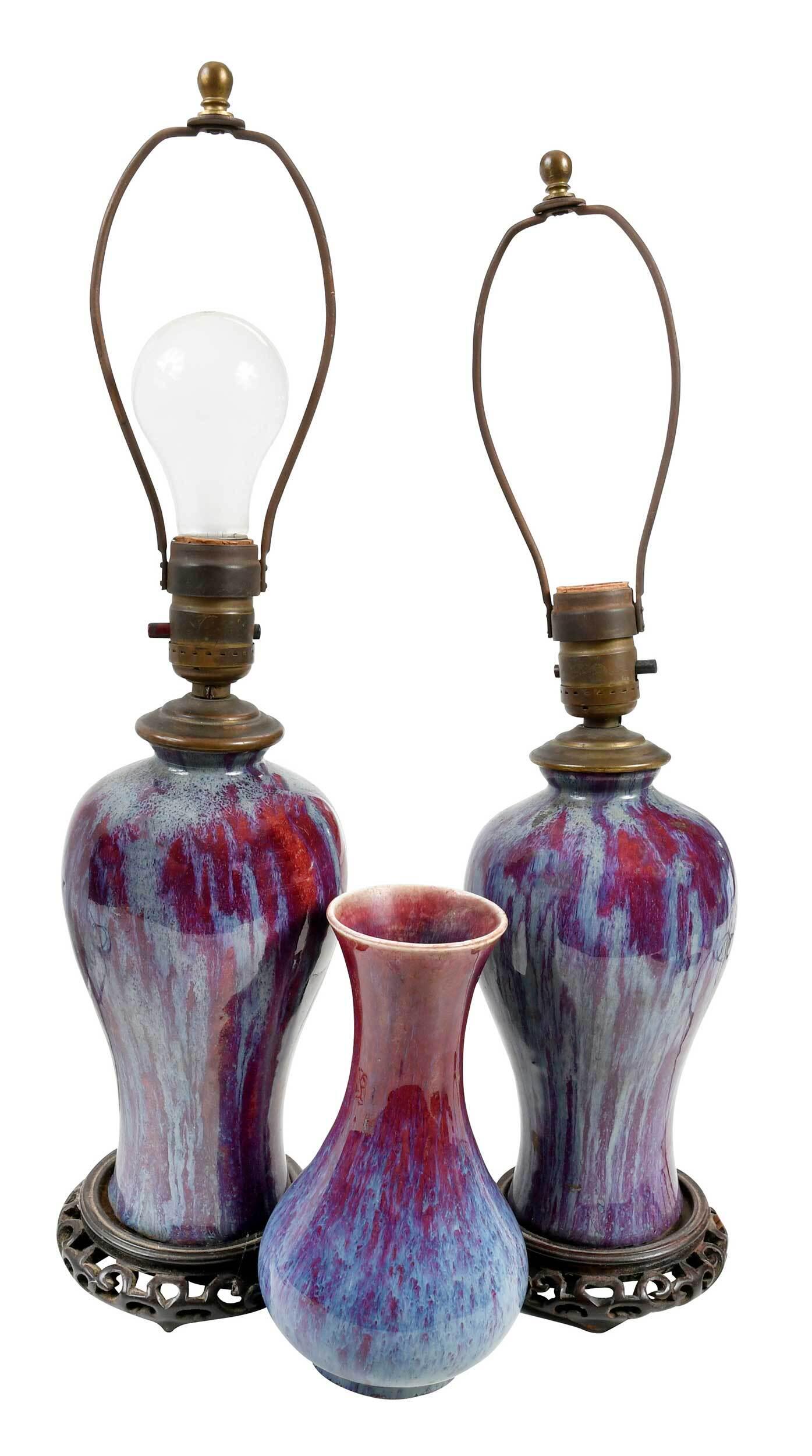 Lot of 3 Asian Porcelain 20th Century Lamps.4 days LeftChinese Flambe Oxblood Glazed Porcelain Vases 2pcsMar 26, 2026Pair of Chinese Archaistic Style Gu Vases as LampsMar 25, 2026Pair of Chinese Sang de Boeuf Oxblood Red Glazed Ginger Jar Table Lamps on Wood StandsChinese Red-Glazed Jar Lamp and a Flambe-Glazed Hu Vase5 days LeftThree Vases, Japan, circa 1900Apr 04, 20262 long-neck vasesMar 28, 2026Two Chinese Copper Red Glazed Baluster VasesMar 26, 2026Three Glass Oil LampsMar 28, 2026TWO CHINESE SANG DE BOEUF PORCELAIN BOTTLE VASES, QING DYNASTY.Mar 27, 2026