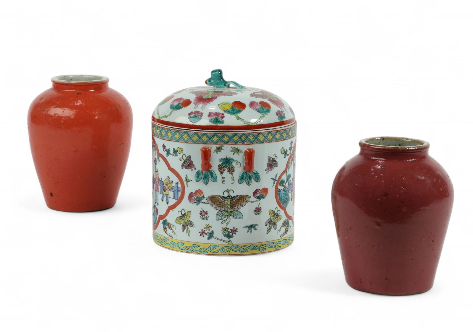 Three Chinese glazed ceramic decorations