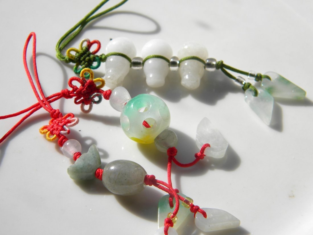 SoldThree Chinese Jade Pendants.Three Chinese Jade Pendants. One pendant bears a .835 silver chain. Together with a Chinese carved cinnibar and silver ring and a Chinese porcelain bead necklace bearing a silver clasp Largest PendantSee Sold Price