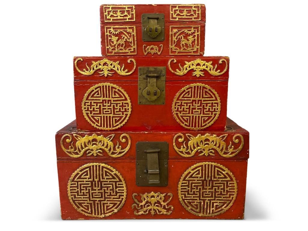 Three Chinese Lacquered Nesting Boxes