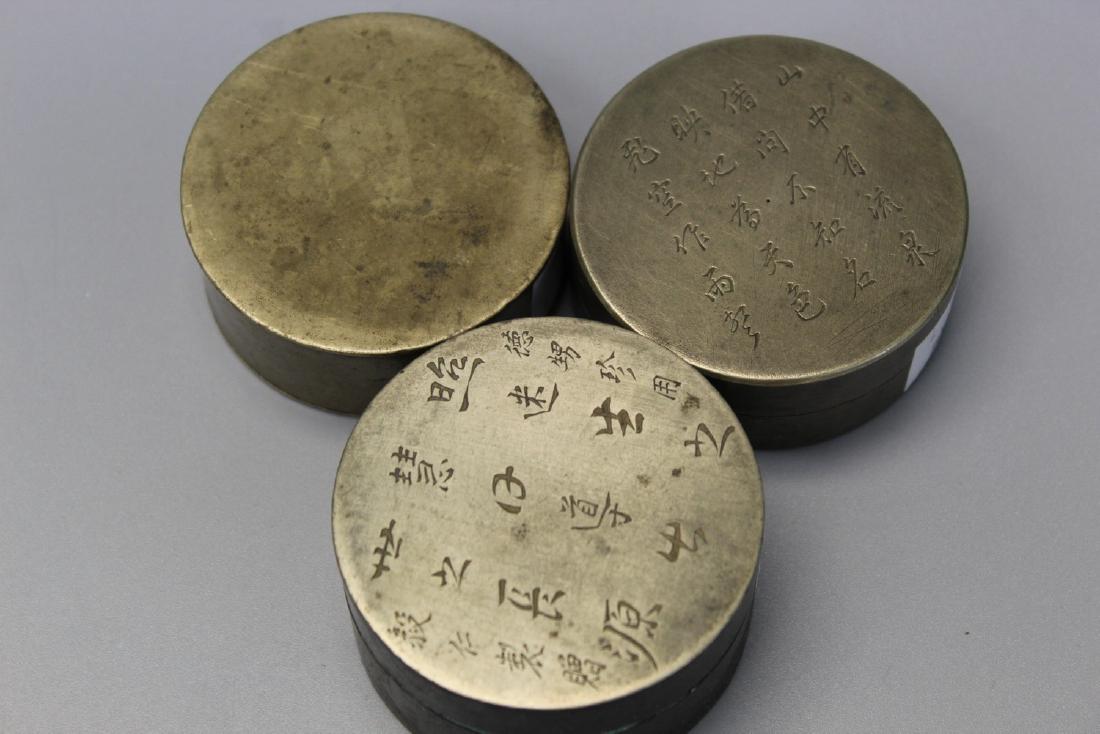 Three Chinese metal ink boxes.