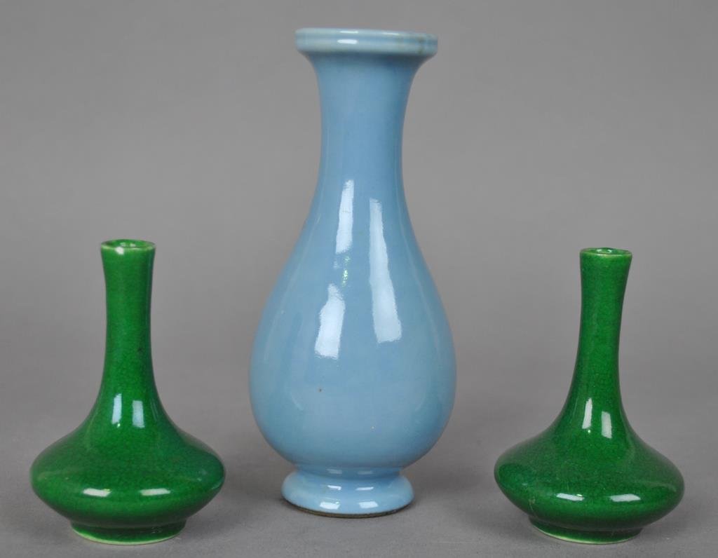 TWO CHINESE TURQUOISE GLAZE PORCELAIN VASES 20th Century Heights 11" and 16".Eldred's4.8(489)$1254 days Left