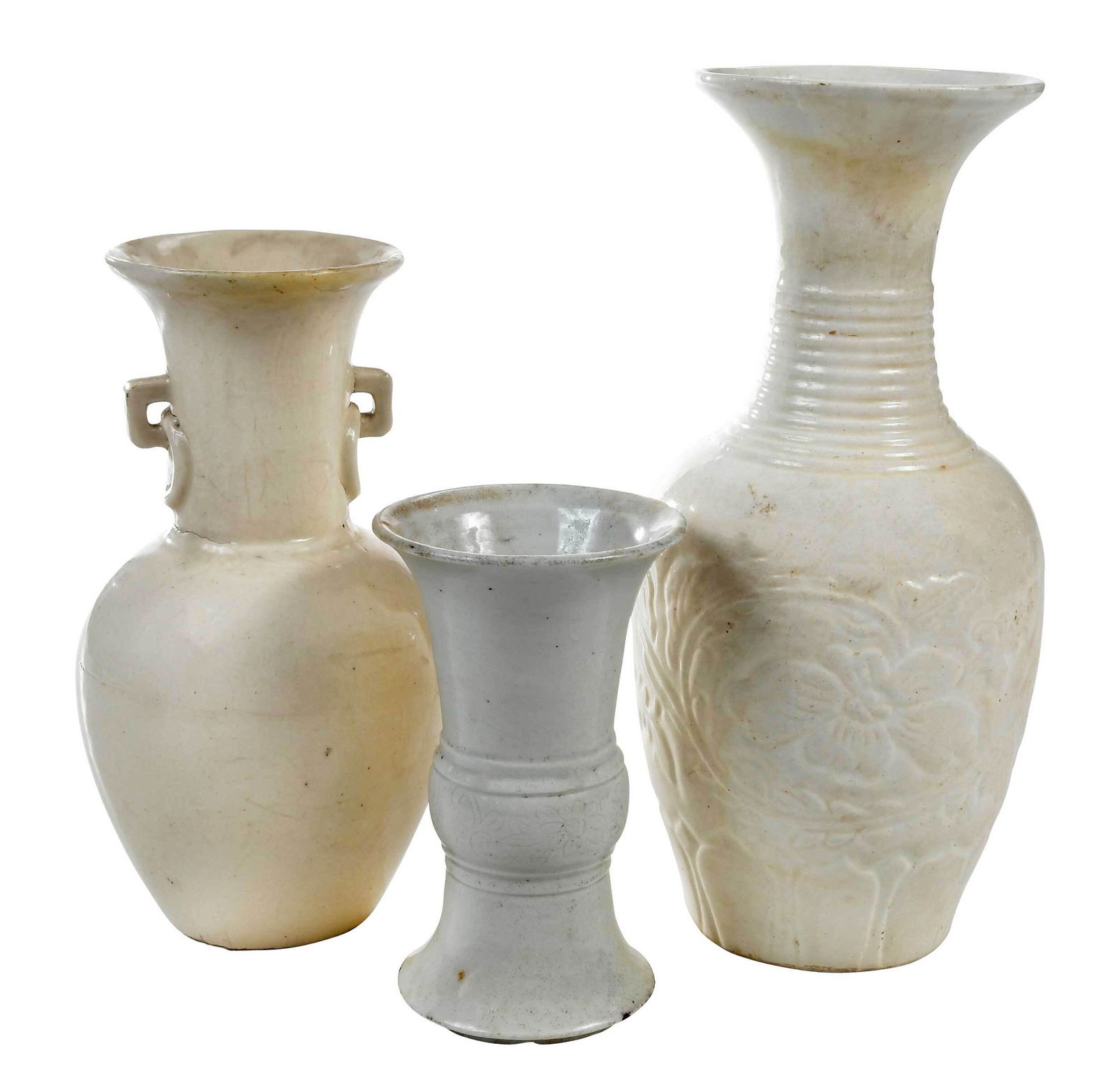 Three Chinese White Glazed Pottery Vases
