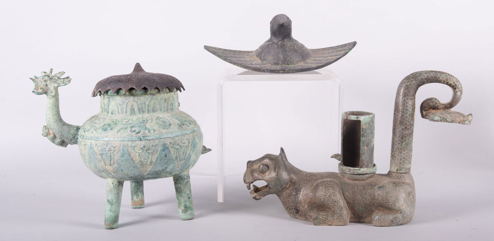 Three Chinese Zoomorphic Archaic Style Bronze Object