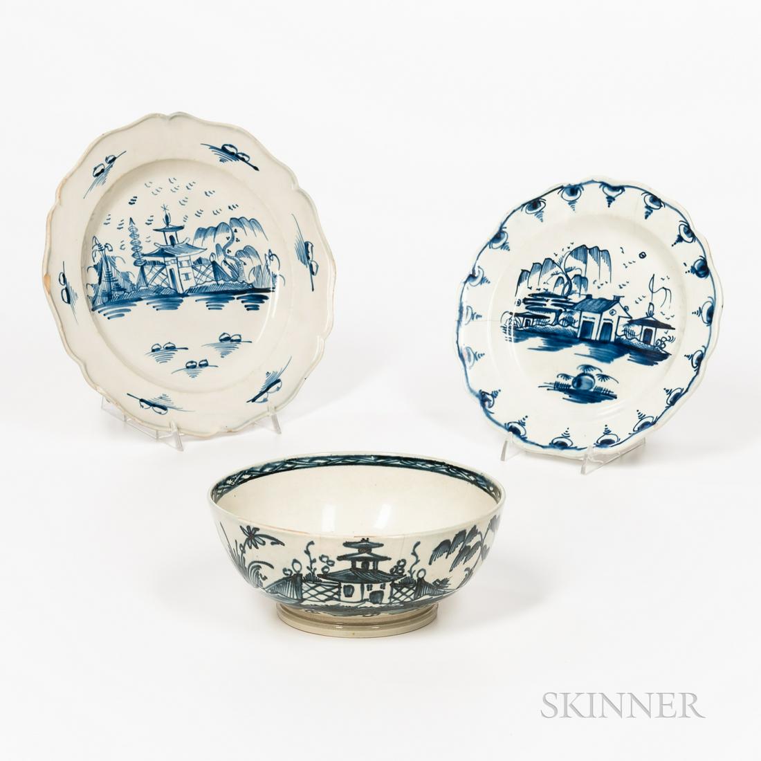 Three Chinoiserie Pattern Pearlware Table Items,