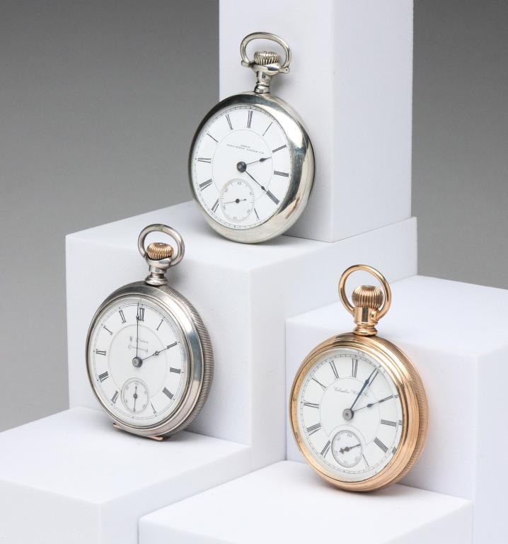 THREE COLUMBUS TRANSITION POCKET WATCHES.