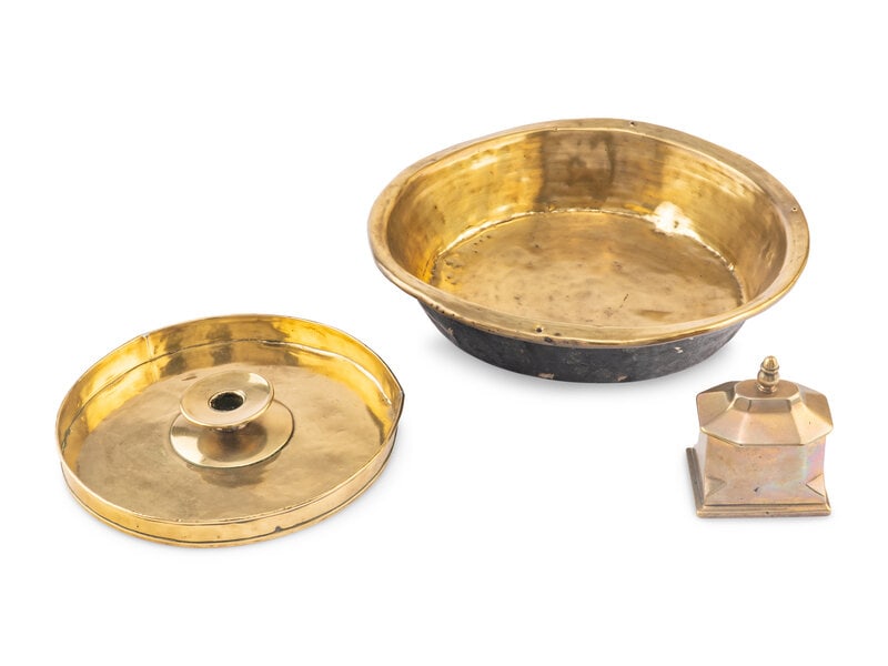 Lot of 3 antique brass lighting devices incl whale oil, candlestick & chamberstick- 4 1/4", 4 1/2" &Mar 23, 2026TIN / BRASS CANDLEHOLDERSMar 22, 2026Chinese Bronze Censer, Xuande Reign; & Three Coins281 Lots AwayFour Articles of Sterling Silver including Porringer6 days LeftAntique Gold Pickard Set of 10 Candy Dishes Sugar Bowl CreamerMar 22, 2026VINTAGE STERLING SILVER TABLEWARE / DISHES 52 GRAMS SOLID WEIGHT, 270 GRAMS COMBINED WEIGHTThree Arts & Crafts Copper and Brass Serving TraysMar 27, 2026A NEAR PAIR OF OTTOMAN GILT-COPPER (TOMBAK) LIDDED BOWLS (SAHAN) TURKEY, 18TH CENTURYMar 24, 2026A collection of seven brass alms dishes, probably 16th century or later, Continental,4 days Left