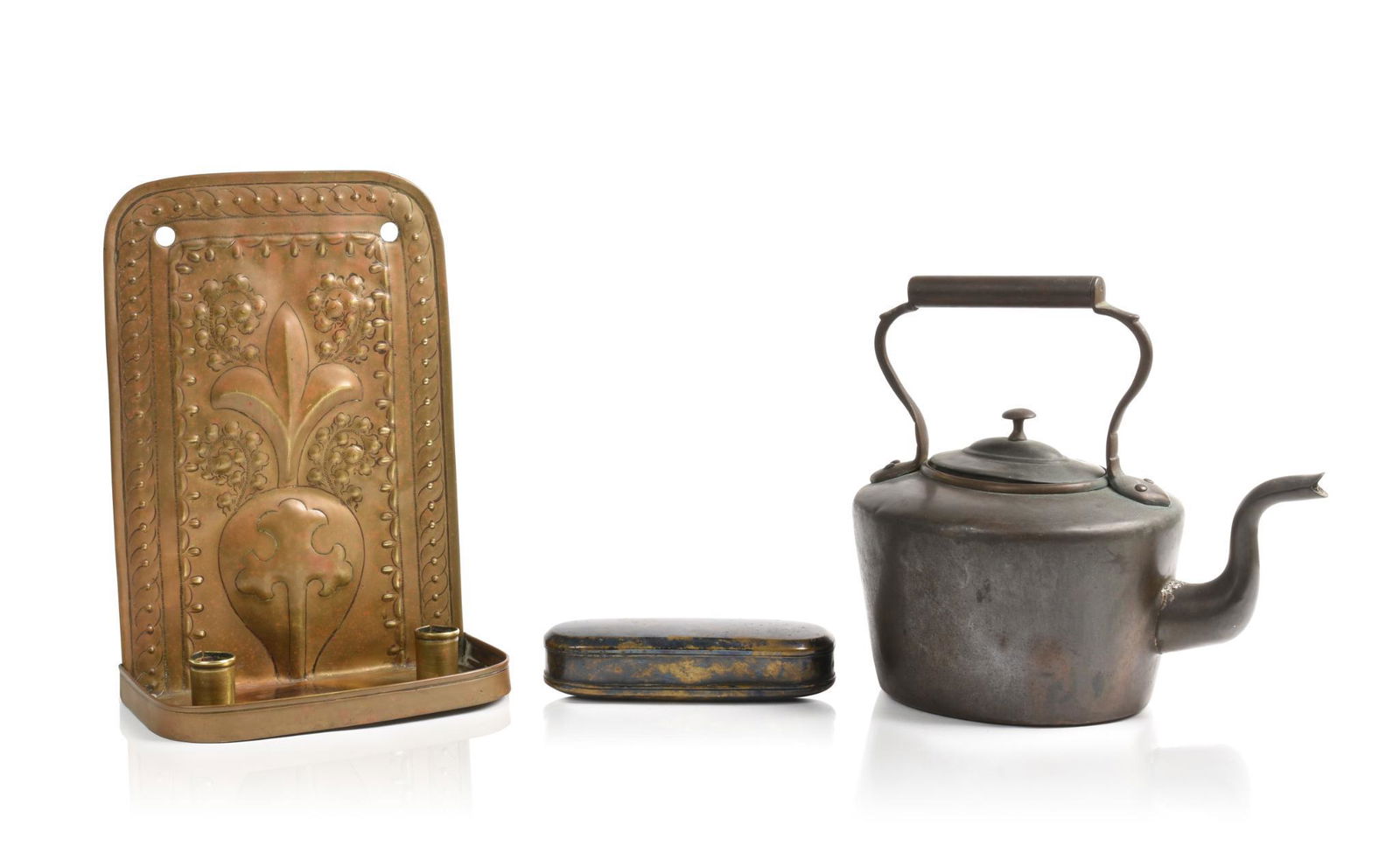 Lot of 3 Lamps, Sterling Tobacco Tin & Brass Candlestick2 days LeftLot of Antique Metal ItemsMar 26, 2026LOT OF BRASS KEROSENE LAMP BASESFeb 26, 2026LOT OF TWO COPPERWARE PIECES WITH BRASS HANDLESMar 07, 2026(6) LARGE COPPER & BRASS KITCHENWARE POTS2 days LeftASSORTED VINTAGE COPPER COOKWARE w WALL RACK4 days LeftVintage Copper Assortment, Various Mfgs3 days LeftAntique Japanese Earthenware Teapot Together with Bronze Meiji CandlesticksFeb 28, 2026(2) COPPER CHAFFING DISH & FIGURAL MOUNTED SAMOVAR / HOT WATER URN1 day Left(5) COPPER & CERAMIC COOKWARE, SWISS SAUCEPANS & BAIN-MARIE BOILER1 day LeftCollection of Antique Copper Kettles(4) COPPER & BRASS KITCHENWARE, LADLES, PITCHER & BRAZIER1 day LeftFrench silverplate three piece tea service.5 days LeftCopper Kettle and Vessels, gooseneck kettle, 2 copper vessels with bail handles, 6"x8"5 days LeftAN OTTOMAN LANTERN AND TWO INCENSE BURNERS 19th CenturyMar 04, 20263 pcs Vintage Silver Plated Tea Pots, incl. 1x W.W.H. & Co. & 1x Homan. Very Good Condition.